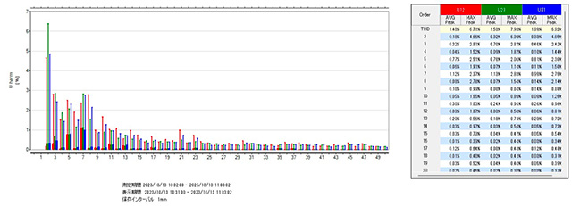負荷設備の電気使用量、電源品質の調査例